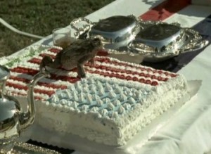 I’d rate this one a solid party movie. Silly and gruesome enough to entertain the most jaded B-cinemaphile and since the ‘plot’ consists almost entirely of nothing but loosely connected nature-run-amuck scenes, it works well for folks wandering in and out of the room as they’ll always catch something good without ever having to worry about catching up with what is going on. The schadenfreude inherent in watching otherwise well-respected actors slumming it is purely a bonus. Just make sure that (unlike the folks running the projection booth this year) you hang out to the end of the credits, as that is the only place you’ll see the infamous frog-with-a-hand-hanging-out-of-its-mouth image from the poster art.