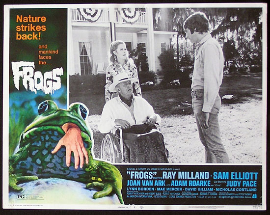 Frogs (1972) – I do sometimes wonder what exactly Ray Milland did to piss off the Hollywood gods by the 1970s. From winning an Oscar for his role in Lost Weekend to appearing in all kinds of disreputable low-budget films, including this AIP eco-thriller.